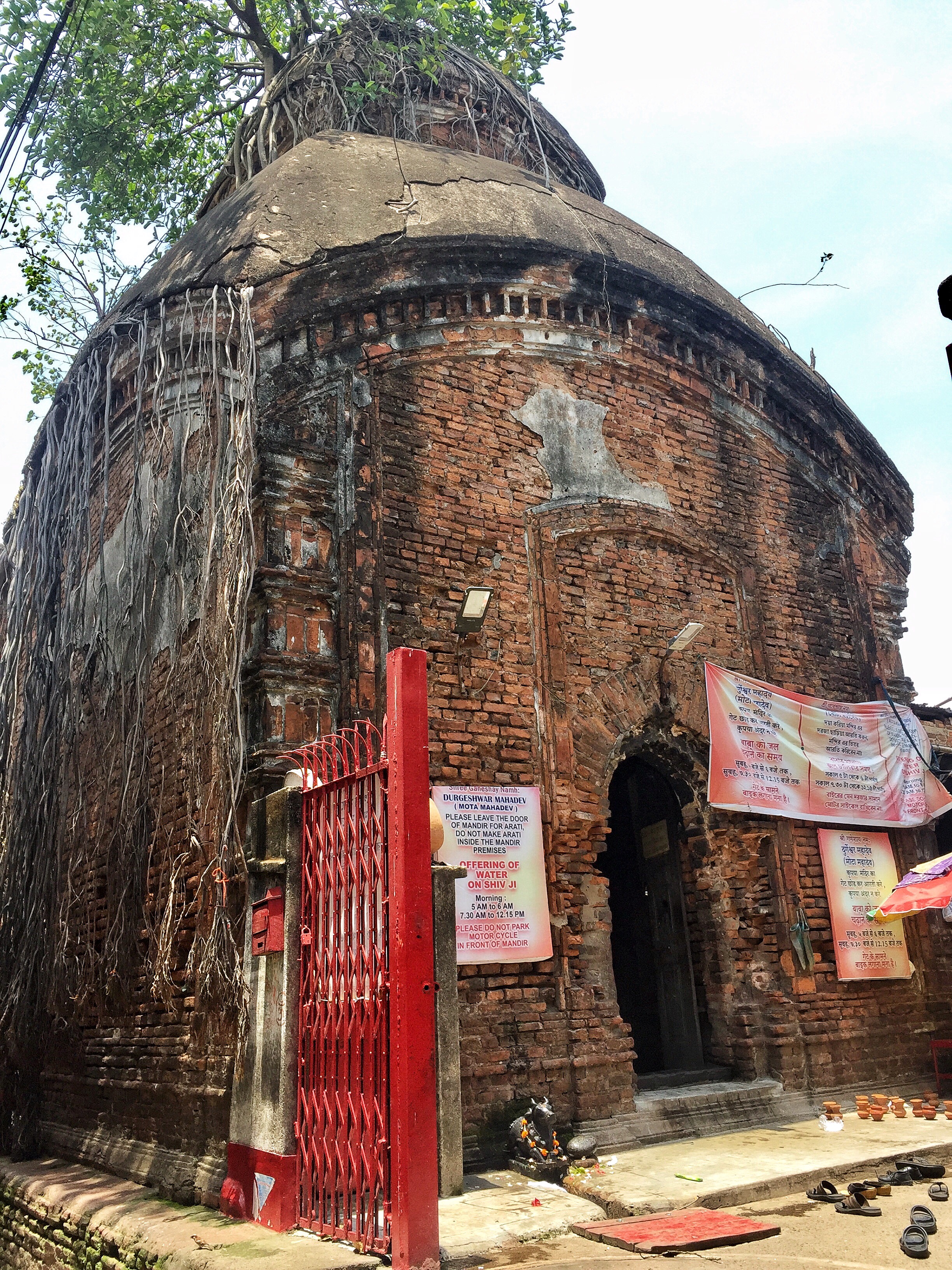 Durgeshwar Shiva Temple at 16, Md. Ramjan Lane is an example of typical aatchala (eight slanting roof) style of Bengal temple architecture.