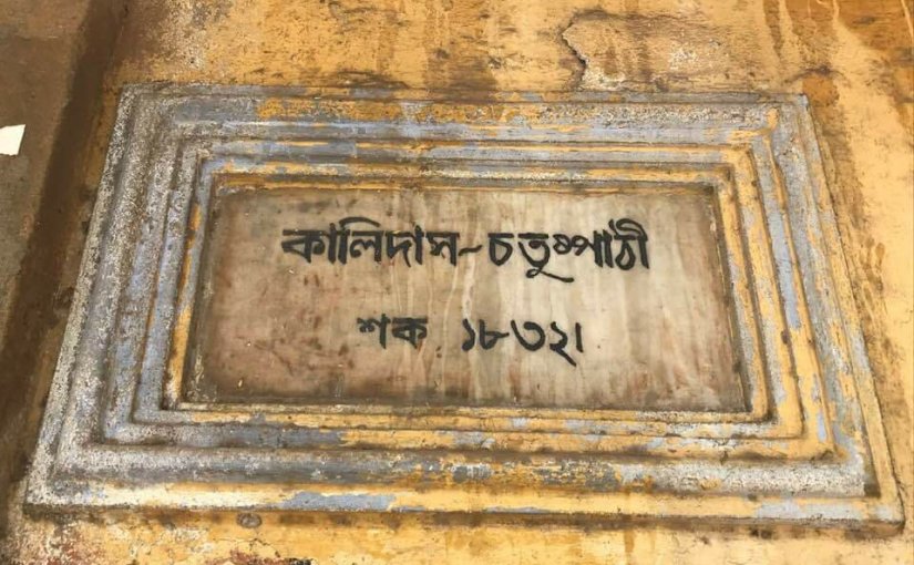 During one of my visits to Chandernagore, I came across a chatuspathi named Kalidas Chatuspathi in Lalbagan area situated close to Nandadulal Temple. There existed a stone plaque just outside the entrance where the year of establishment was written in Sakabda. Converting 1832 Sakabda to Gregorian calendar it comes to 1910 A.D. It was established during the administratorship of Monsieur H. Lagroua (1909-1911). The chatuspathi was founded by Kalicharan Das and it was learnt that he had donated an amount of thirty thousand rupees at that point of time. It was not known for sure whether anyone before Das had donated such a huge amount for a noble cause – spread of education. It was also learnt that this Sanskrit school had previously trustees like Sadhucharan Mukhopadhyay, Charu Chandra Roy and Bhringeswar Srimani.