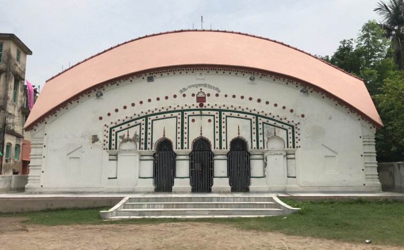 Chandernagore, a former French colony, had a number of temples of which Nandadulal Jiu Mandir at Durga Charan Rakshit Road deserves mention. The temple is unique in the sense that it is one of the finest specimen of do chala (double sloped roof) mandir of Bengal’s temple architecture.