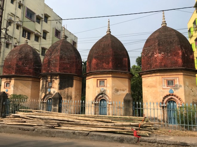 There are a number of plaques on the temple wall – but very difficult to decipher what is written. It states that the temples were founded on 4th Jaistha, 1271 Bangabda which when converted to Gregorian calendar comes to 19th May, 1864.