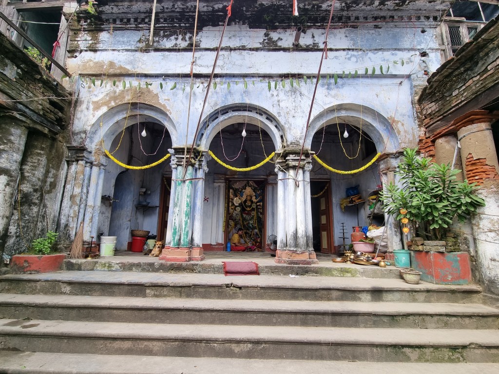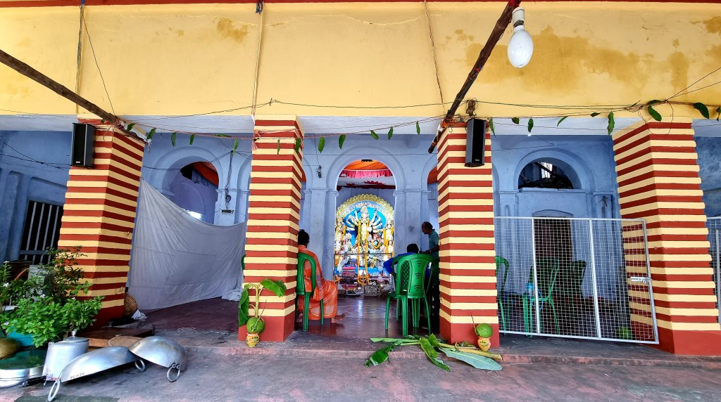The traditional ekchala protima is built in the thakurdalan from Rathayatra following the kathamo puja. I was told on that day paramanno is offered. Coming to the puja rituals, I was told Durga Puja is celebrated here following the Baisnab rituals as there is no sacrifice. Annabhog is given to Maa Durga.