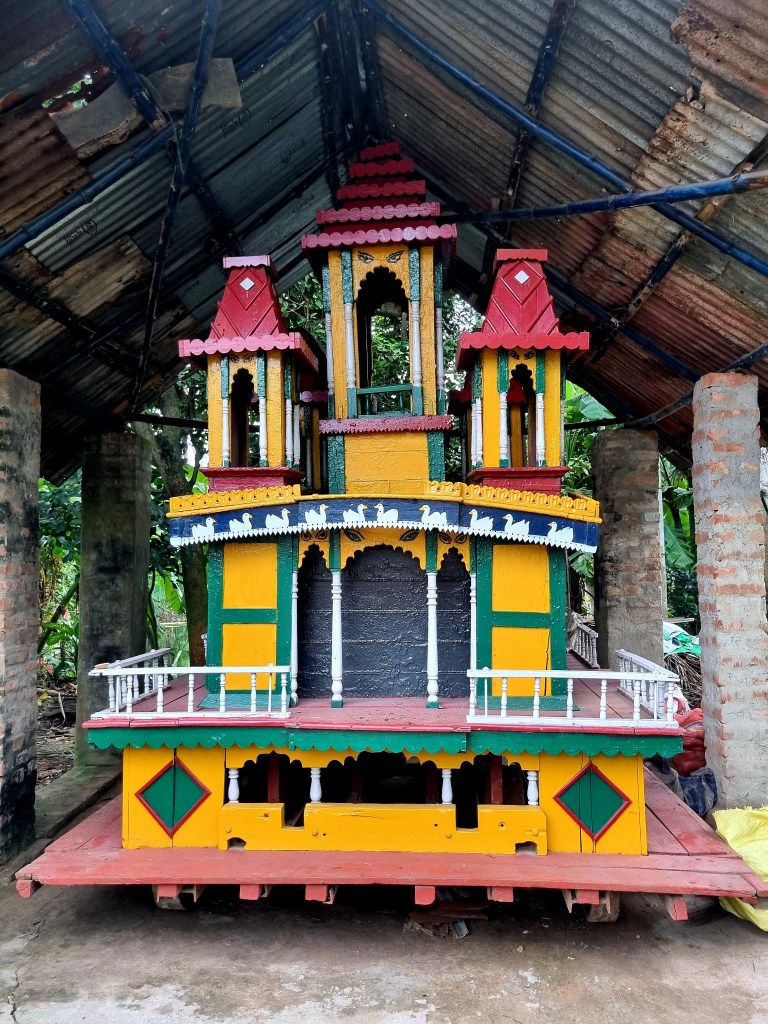 Now coming to its history. The Garalgacha Jamidar Bari was built in 1767 and I was told that puja continued from the same year. In that context the Durga Puja here is more than 250 years old. According to Shri Riju Mukherjee, family member, the puja was first started by Naba Kishore Mukhopadhyay. It was carried on by the successive generations – Radhanath Mukhopadhyay – Dwarikanath Mukhopadhyay – Debendranath Mukhopadhyay – Harihar Mukhopadhyay- Rabindranath Mukhopadhyay – Rathindranath Mukhopadhyay and by his sons. Currently the house as well as the puja is looked after by Tridibesh Mukherjee.