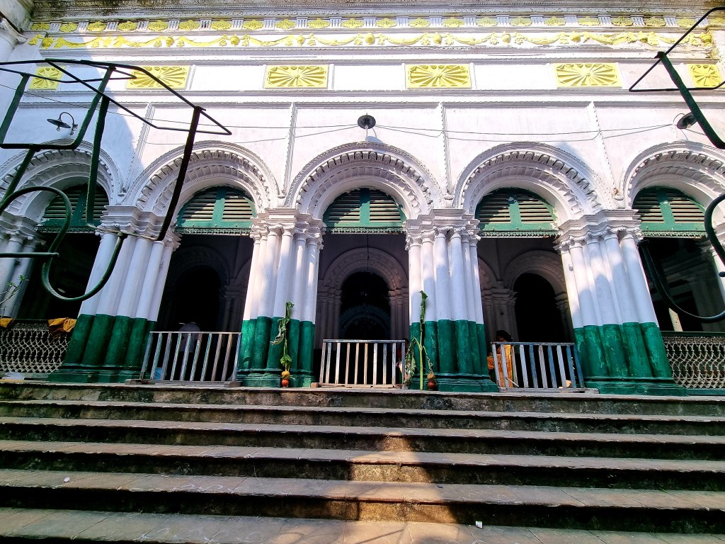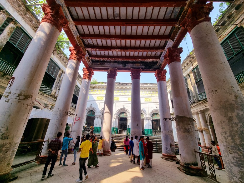 The chandni rests on twenty four Corinthian columns and measures an area of 120 feet by 30 feet. This area was previously a tank. An unfortunate event occurred for which the tank was filled up and the chandni was built. It is a massive structure. When I went there I found people of all age groups. On entering you will spot the equally large thakurdalan on the right. The thakurdalan has stucco works at the top.