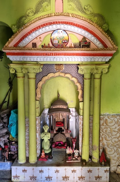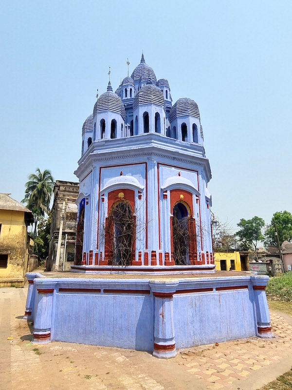 A little away from Babupara I spotted two unique rasmanchas standing side by side each on a higher pedestal and both have unique architecture. The one at the left is a nabaratna (nine pinnacled) “with baroque vase turrets” while the other on the right is a saptadasratna (seventeen pinnacled) “with rekha turrets”. Isn’t it interesting?