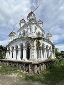 Coming out of the house I enquired about a nine pinnacled rasmancha and I was told by the locals that the same will be spotted if I move further. Accordingly I followed the path and the first structure which I saw was a three-storied tower more or less like the tower of Gayen family. Walking further I saw a grand rasmancha on a raised platform. The rasmancha has received a coat of white colour. Once you see this structure initially it looks like a temple. During the rash festival the idols of Radha-Krishna are worshipped inside this mancha for three days.