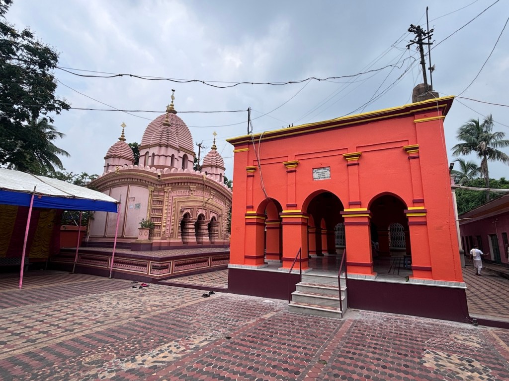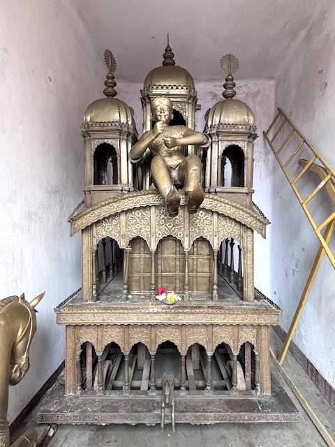The pancharatna Ramchandra Jiu Temple was founded by Meruchandra Hunday in 1739 A.D and Gopinath Jiu Temple by Bakhtar Singh Hunday in 1801. The Hundays have two brass chariots – one big (30 feet) and another small (12 feet). Previously both are used but now only the big one is drawn. Both are kept throughout the year in ratha griha. Last year I was invited by Shri Sandip Hunday to witness the rathyatra in Ukhra. Accordingly, I boarded Hool Express from Howrah and reached Ukhra at around ten in the morning. From the railway station I boarded a toto and reached Gopinath Jiu Mandir.