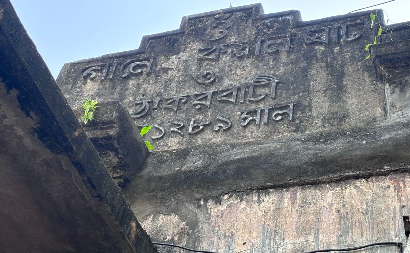 The ghat together with the thakurbati was built in 1289 Bangabda (i.e., 1883 according to English calendar). A plaque depicting the same is at the top of the ghat facing the river. One can also come across a blue plaque of Kolkata Heritage. A flight of stairs will lead you to the thakurbati which is a flat-roofed structure.